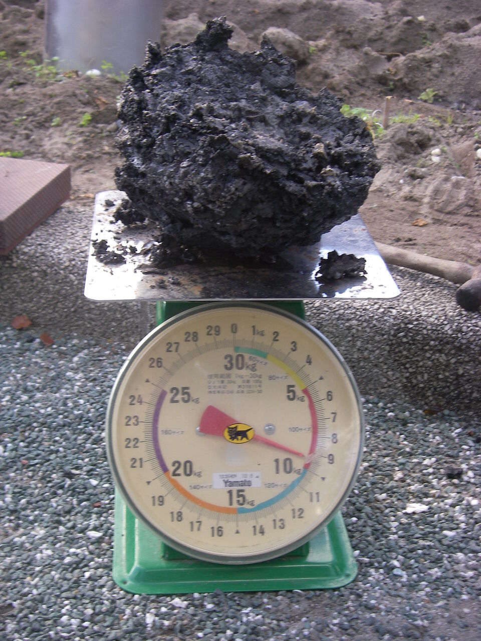 なんと9,4Kgの重量を誇る鉄塊があります。理論値ではこれが限界のようです。(15Kg中の鉄成分)